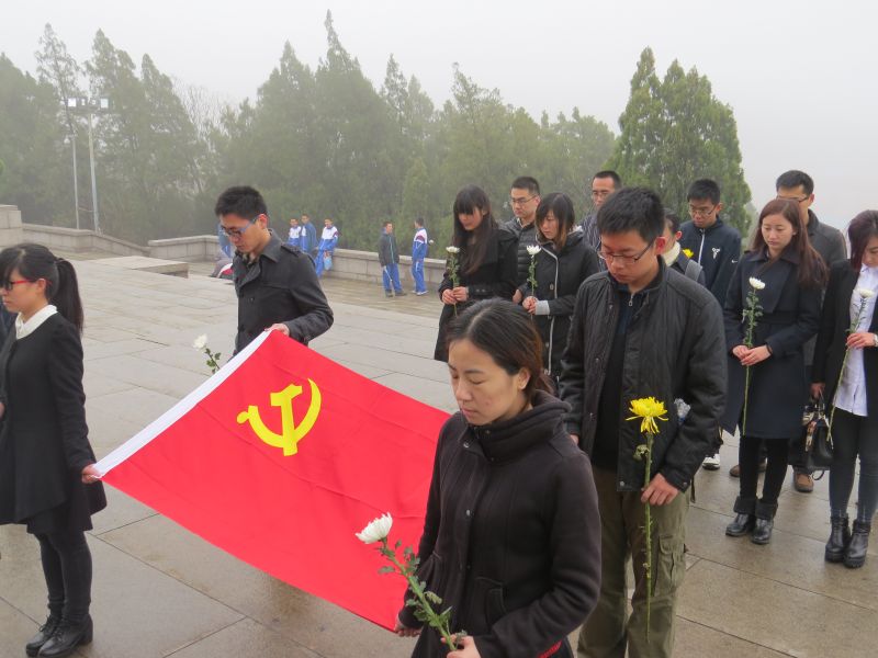 上午十点,党员代表抵达烈士陵园。大家怀着无比崇敬的心情,在烈士墓碑前举行了悼念仪式。仪式上全体党员向烈士默哀1分钟,并由党员代表上前致悼词,全体党员在烈士墓碑前重温入党宣誓,在仪式的最后全体绕纪念碑一圈向革命烈士献花并鞠躬致敬,以表达对革命先烈缅怀之情,整个仪式气氛庄严肃穆。