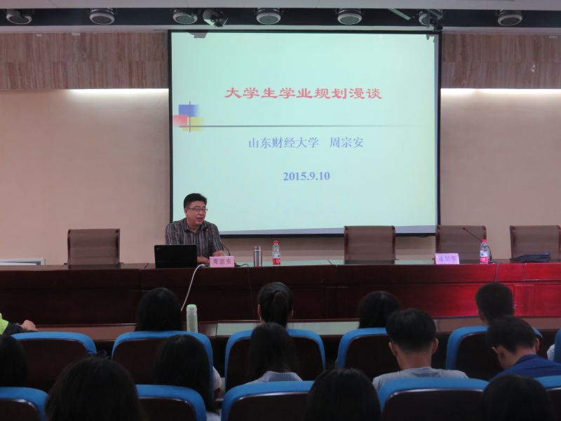 9月10日,金融学院在圣井校区敏行楼举办了“漫谈大学生学业生涯规划”讲座。本次讲座由我校党委组织部部长、博士生导师周宗安教授主讲,来自金融学院2015级共580名新生参加聆听了讲座。