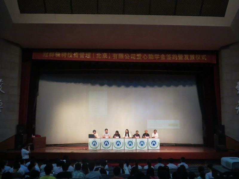 6月4日下午,冠群驰骋投资管理(北京)有限公司爱心助学金签约暨发放仪式在舜耕校区礼堂举行。金融学院学工办主任兼团委书记彭艳红、辅导员李勇出席了签约仪式,仪式由金融学院辅导员孙琦主持。